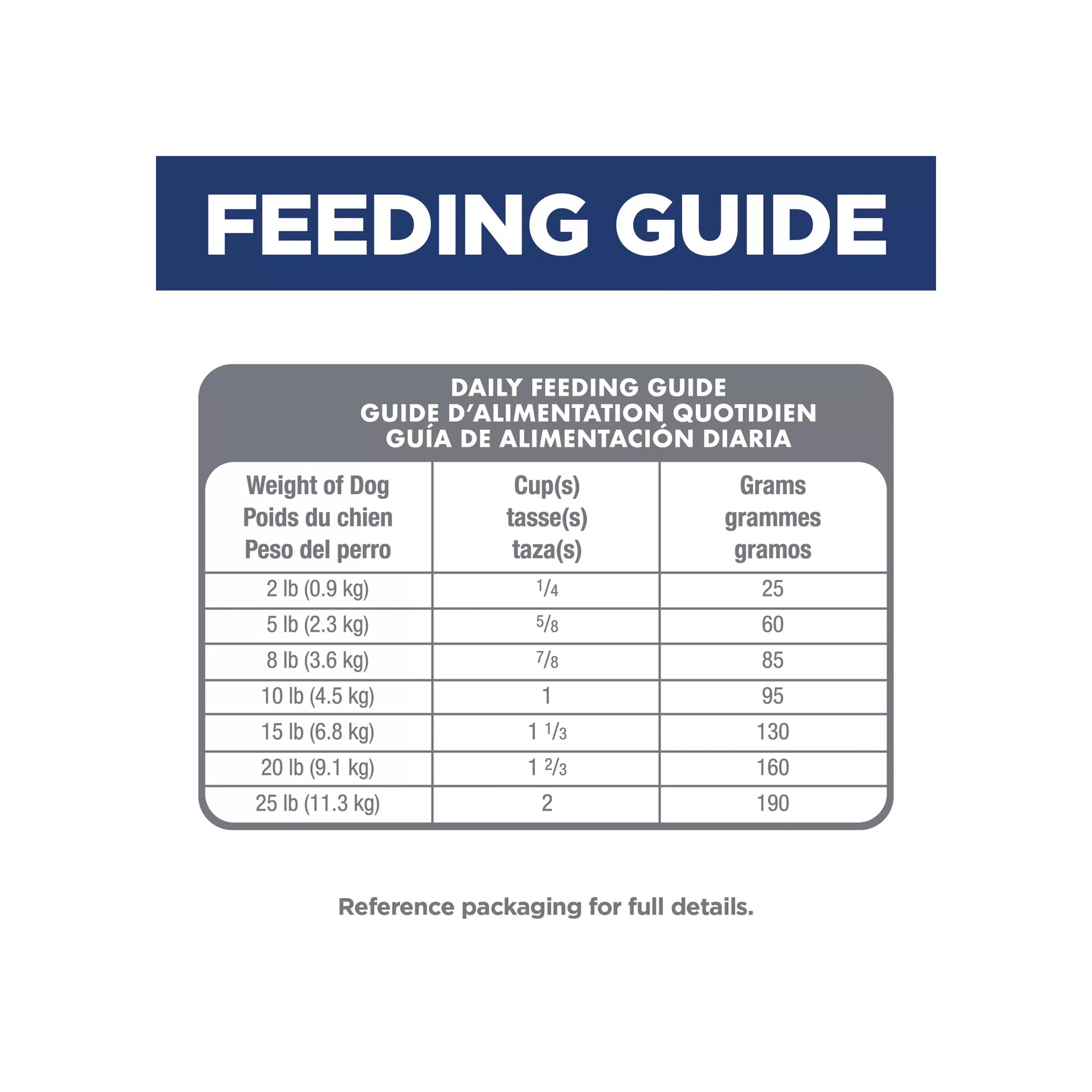 Your little dog is still a full-grown canine, so make sure your small or toy breed dog has the precise nutrition of Hill's Science Diet Small adult dog food. This pet food is made with easy-to-digest ingredients that are specially formulated for a little dog's stomach. The small kibble is suited for a little canine mouth, with high-quality protein for lean muscle maintenance, plus nourishing omega-6s and vitamin E to promote healthy skin and a healthy coat. To support your tiny dog's immune system, this dog food made with natural ingredients contains a proprietary antioxidant blend that will promote lifelong health for your adult small breed dog. There's more to love with the new look of Science Diet.