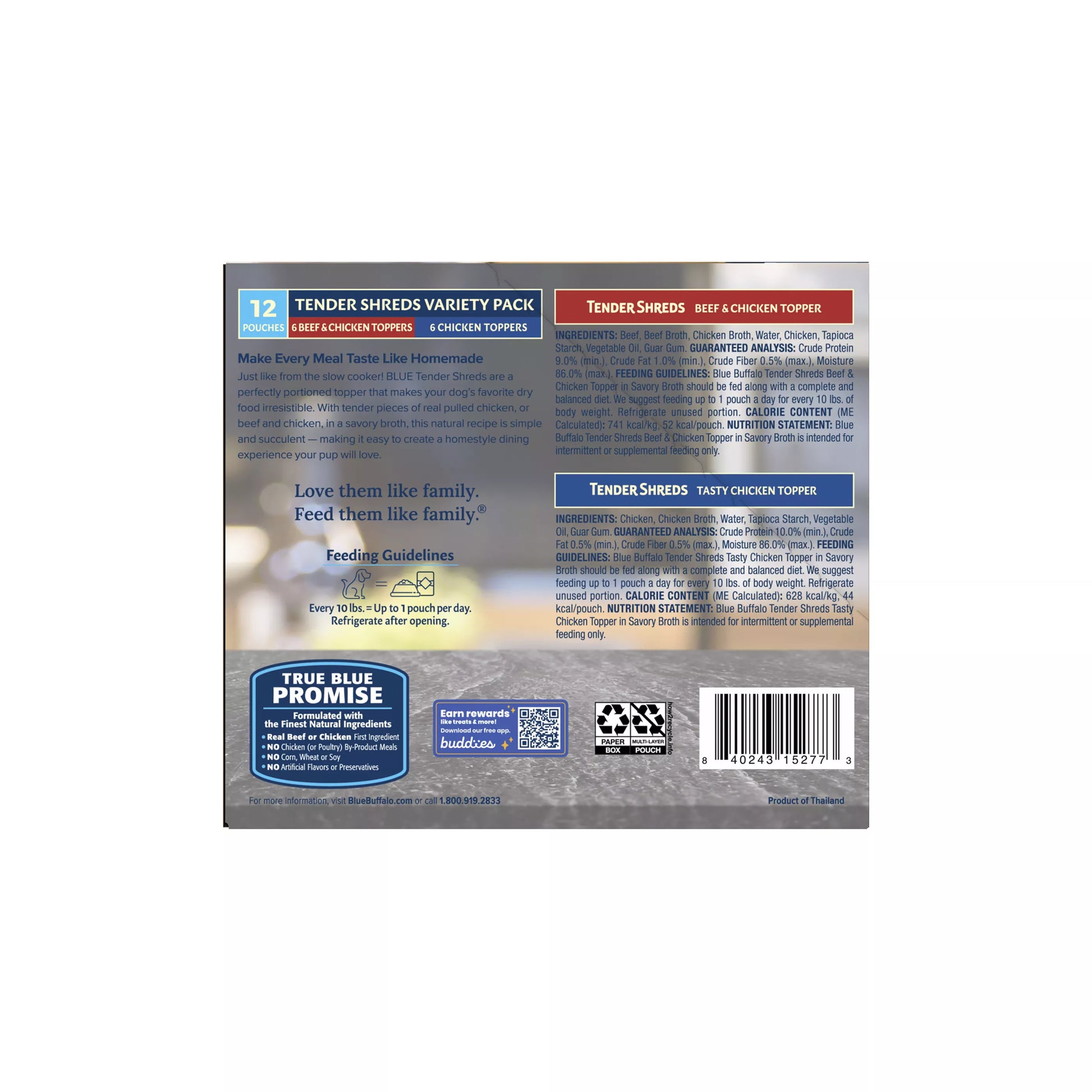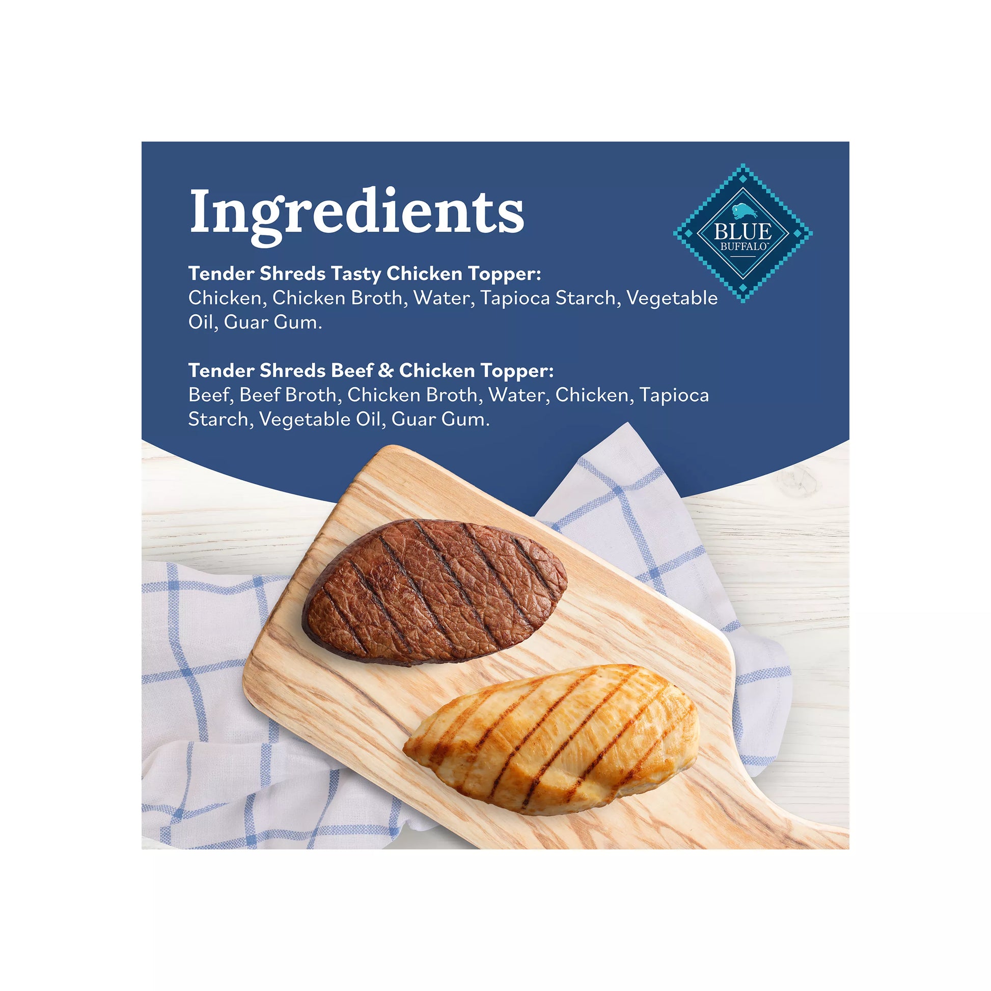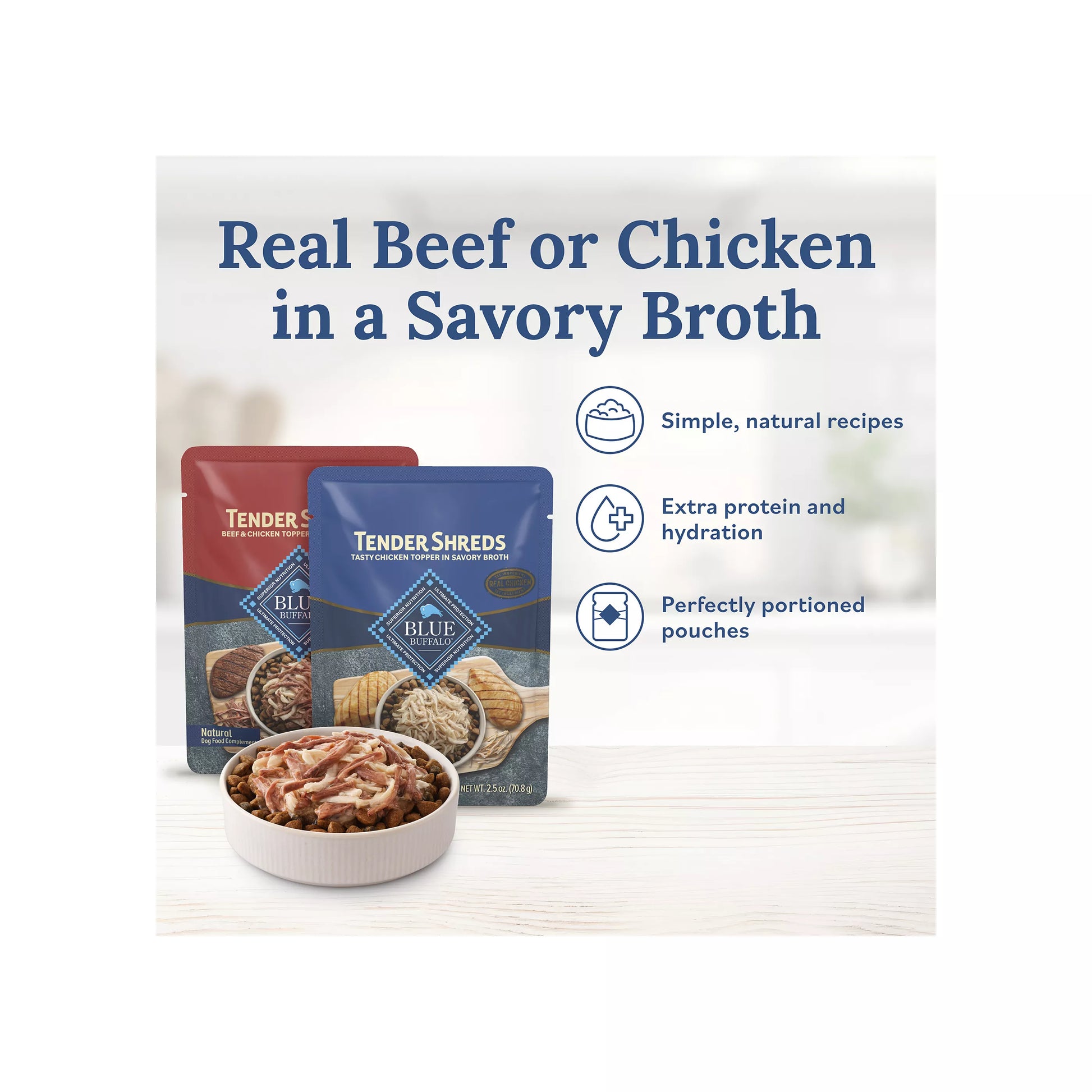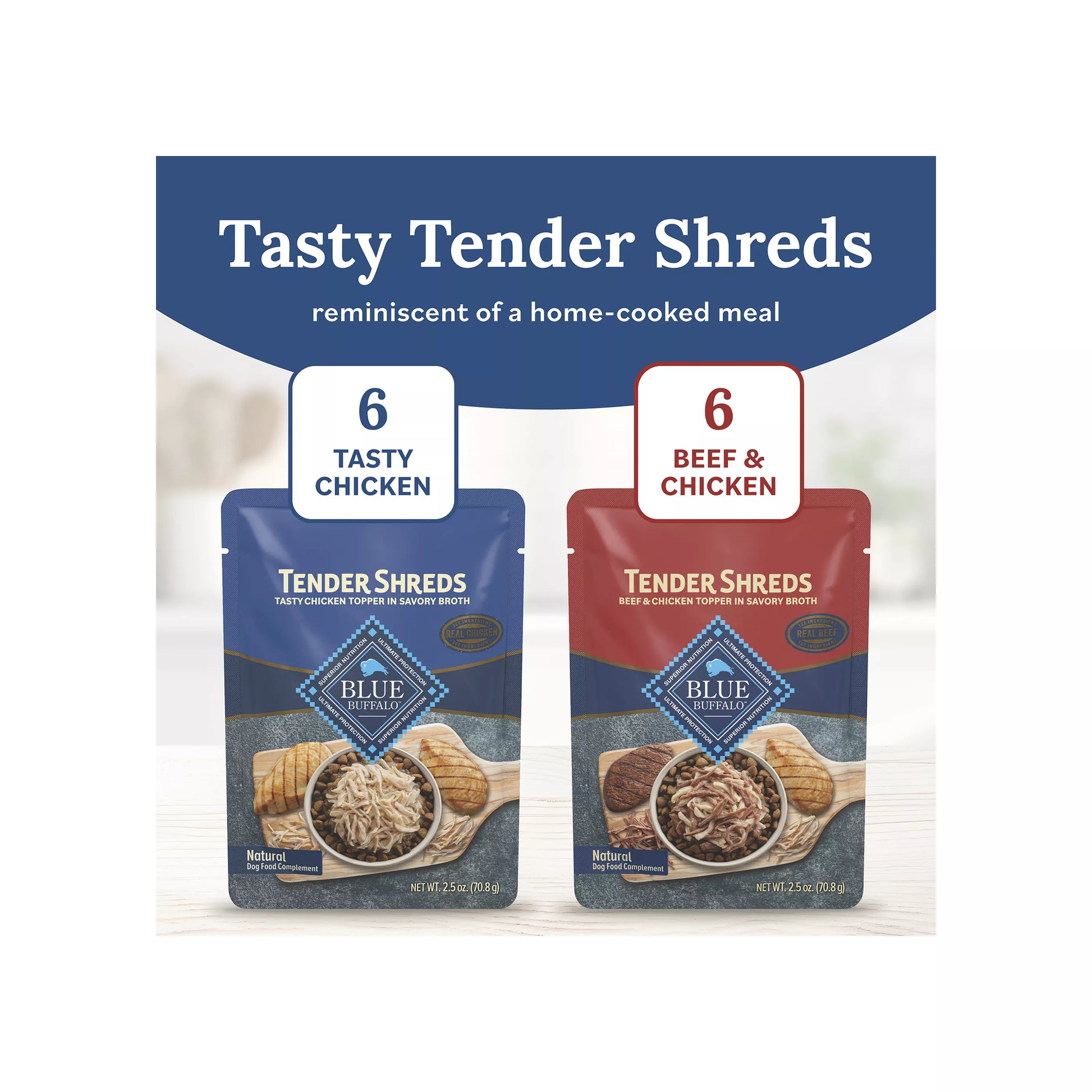 Blue Buffalo Tender Shreds Variety Pack All Life Stage Dog Food Topper - Chicken & Beef, 12 Count