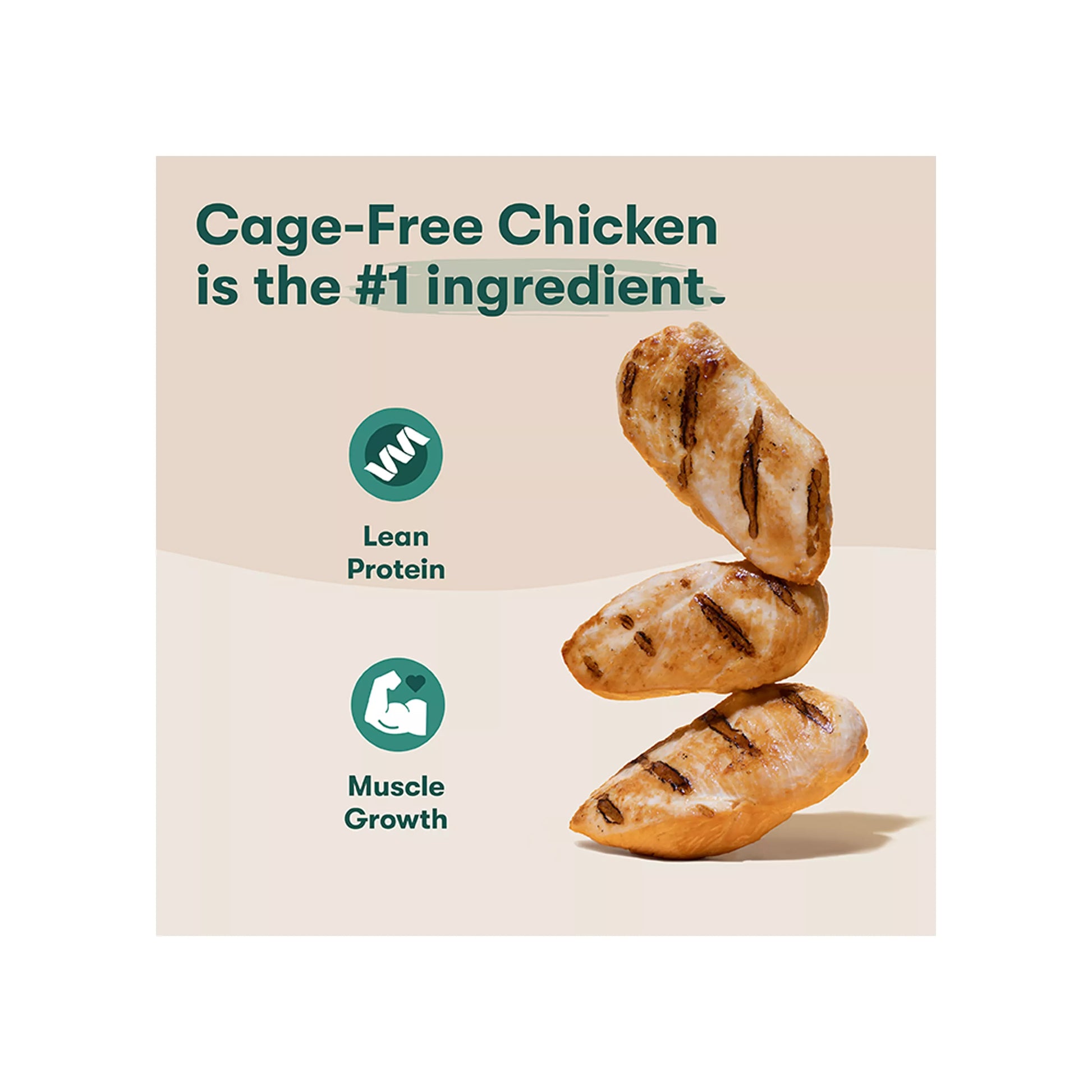 Ingredients Chicken, Carrot, Brown Rice, Peas, Kale, Chicken Bone Broth, Salt, Sunflower Oil, Tricalcium Phosphate, Iron Proteinate, Copper Proteinate, Zinc Proteinate, Manganese Proteinate, Vitamins (Vitamin C [Ascorbic Acid], Thiamine Mononitrate, Vitamin E Supplement, Niacin Supplement, Vitamin A Supplement, DCalcium Pantothenate, Vitamin D3 Supplement, Riboflavin Supplement, Choline Chloride, Pyridoxine Hydrochloride, Folic Acid, Biotin, Vitamin B12 Supplement), Potassium Chloride, Magnesium Sulfate, Sage, Thyme, Rosemary, Selenium Yeast, Potassium Iodide.