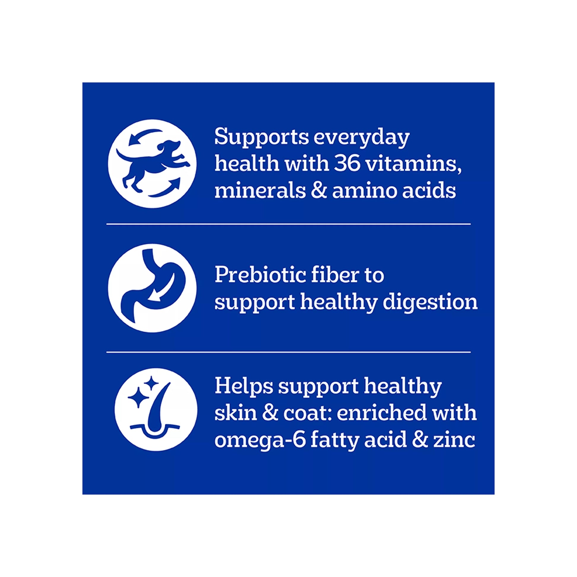 Ingredients Ground Whole Grain Corn, Meat and Bone Meal, Soybean Meal, Animal Fat (Source of Omega 6 Fatty Acids [Preserved with BHA and Citric Acid]), Ground Whole Grain Wheat, Corn Protein Meal, Natural Flavor, Dried Plain Beet Pulp, Salt, BHA (Preservative), Citric Acid (Preservative), Potassium Chloride, Choline Chloride, DLMethionine, Calcium Carbonate, Dried Peas, Natural Grilled Steak Flavor, Zinc Sulfate, Vitamin E Supplement, LTryptophan, Red 40, Dried Carrots, Yellow 6, Niacin Supplement (Vitamin B3), Blue 2, DCalcium Pantothenate (Vitamin B5), Copper Sulfate, Sodium Selenite, Potassium Iodide, Yellow 5, Vitamin A Supplement, Riboflavin Supplement (Vitamin B2), Vitamin B12 Supplement, Thiamine Mononitrate (Vitamin B1), Vitamin D3 Supplement, Pyridoxine Hydrochloride (Vitamin B6), Folic Acid.