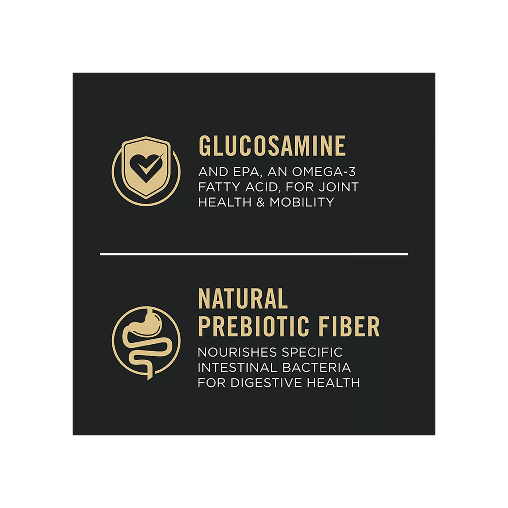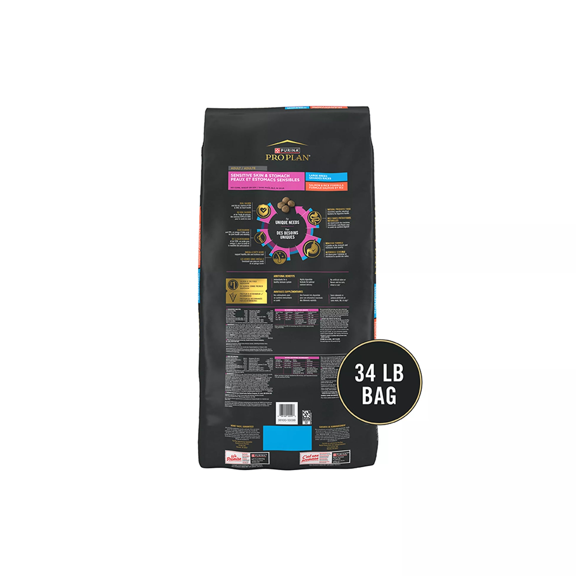Serve your dog nutrition that performs with Purina Pro Plan Large Breed Sensitive Skin and Stomach Salmon and Rice adult dry dog food. With real salmon as the first ingredient, this high protein dog food delivers savory flavor to capture your dog's attention. Oat meal is gentle on his digestive system, while antioxidants provide immune support. Also included are fish oil for dogs with dog omega 3 fatty acids, DHA and EPA, and glucosamine for joint health and mobility, while omega 6 for dogs supports their healthy skin and lustrous coat. Purina formulates this product with natural prebiotic fiber to nourish specific intestinal bacteria for digestive health. This wheat-free and soy-free recipe is made without artificial colors or flavors. Offer 100 percent complete and balanced nutrition to your dog with Purina Pro Plan Large Breed Sensitive Skin and Stomach Salmon and Rice adult dry dog food.