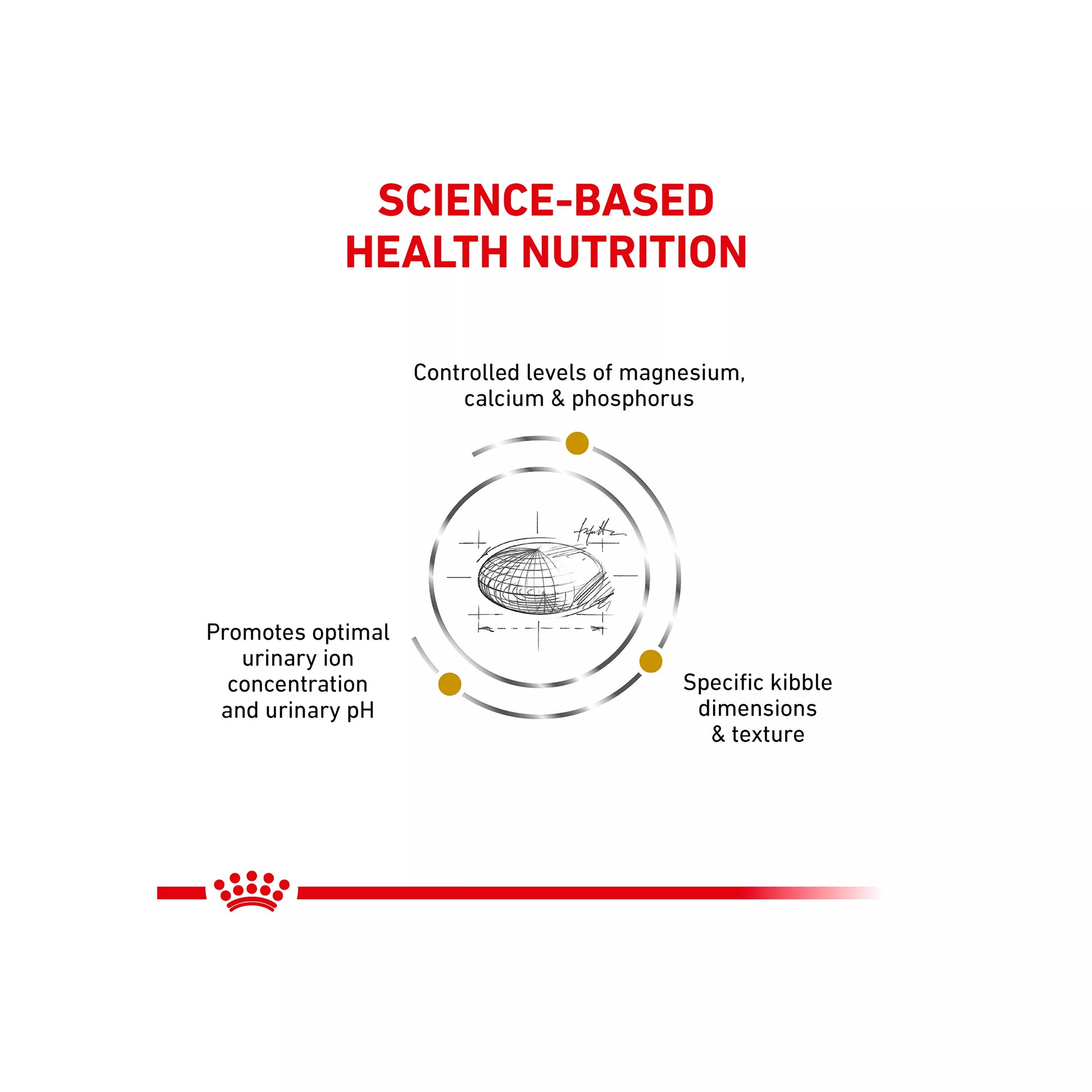 Royal Canin Canine Urinary SO Small Dog Dry Dog Food was developed to nutritionally support your small dog's urinary tract and bladder health. It increases the amount of urine your dog produces to help dilute excess minerals that can cause crystals and stones. Low Relative Super Saturation (RSS) methodology is used to help lower ion concentration in urine, which contributes to stone formation. This formula promotes a urinary environment unfavorable to the formation of both struvite and calcium oxalate crystals. And for dental health, the adapted kibble size for small dogs encourages chewing to help reduce tartar buildup. Lower urinary tract issues may be a recurring concern for some dogs. Talk to your veterinarian about keeping your dog on this urinary dog food for long-term urinary support. And ask them about the right Royal Canin treats to complement your dog's diet.