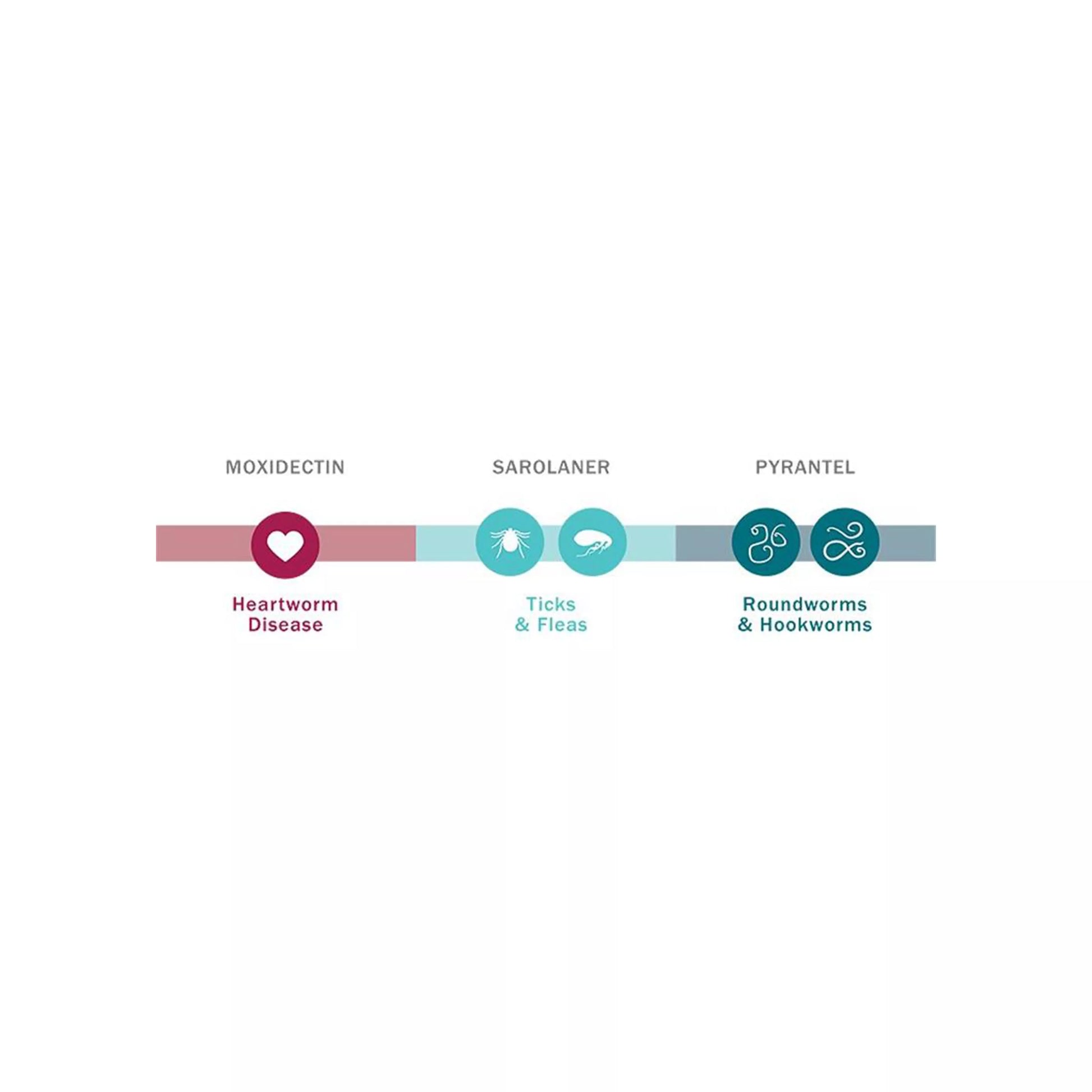 Precautions *For complete Description including warnings and precautions, please refer to the manufacturer package insert. For oral use in dogs only not for use in humans. Sarolaner is a member of the isoxazoline class. This class has been associated with neurologic adverse reactions including tremors, ataxia, and seizures. Seizures have been reported in dogs receiving isoxazoline class drugs, even in dogs without a history of seizures. Use with caution in dogs with a history of seizures or neurologic disorders. Prior to administration of Simparica Trio, dogs should be tested for existing heartworm infections. Infected dogs should be treated with an adulticide to remove adult heartworms. Simparica Trio is not effective against adultD. immitis. The safe use of Simparica Trio has not been evaluated in breeding, pregnant, or lactating dogs. Discuss the risks of using this medication with your veterinarian if your pet is in one of these groups. Do not administer to animals with a known history or suspected allergyhypersensitivity to this medication or any of its ingredients. Allergic reactions to medications may occur. Be sure to inform Vetsource and your veterinarian if your pet has any known drug sensitivities or allergies. If you