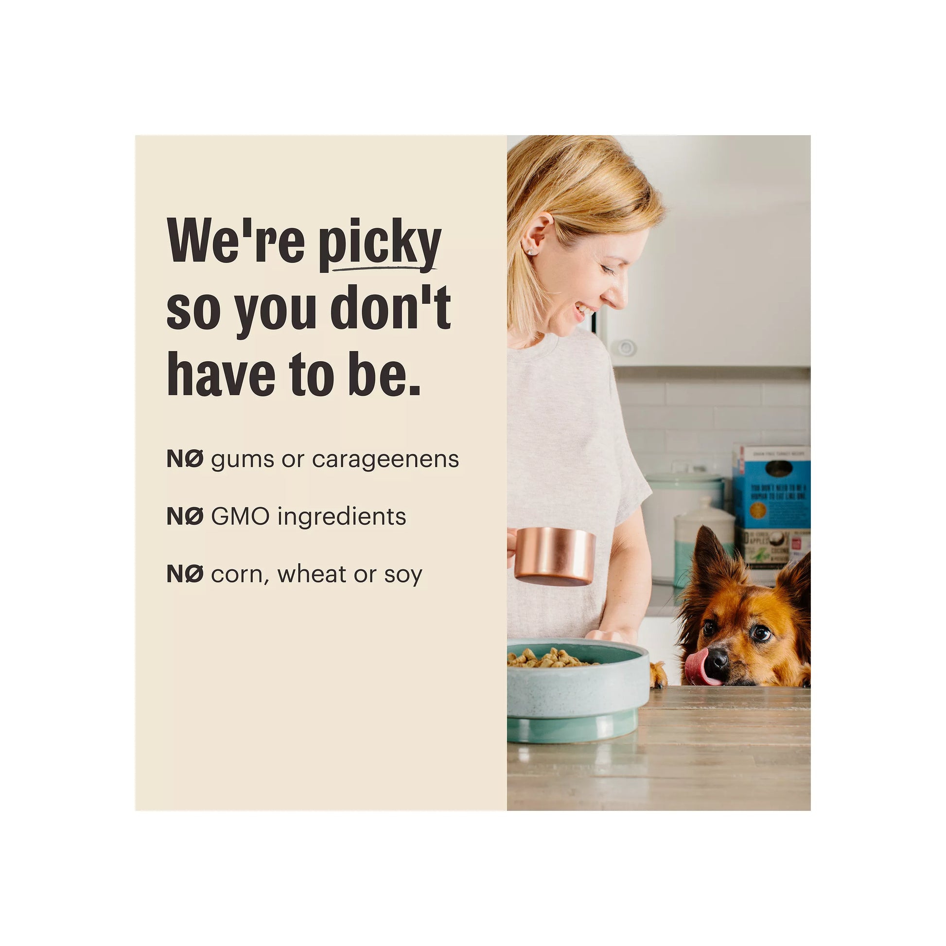 PICKY PET PARENT APPROVED No gums, carrageenan, GMO ingredients, corn, wheat or soy.